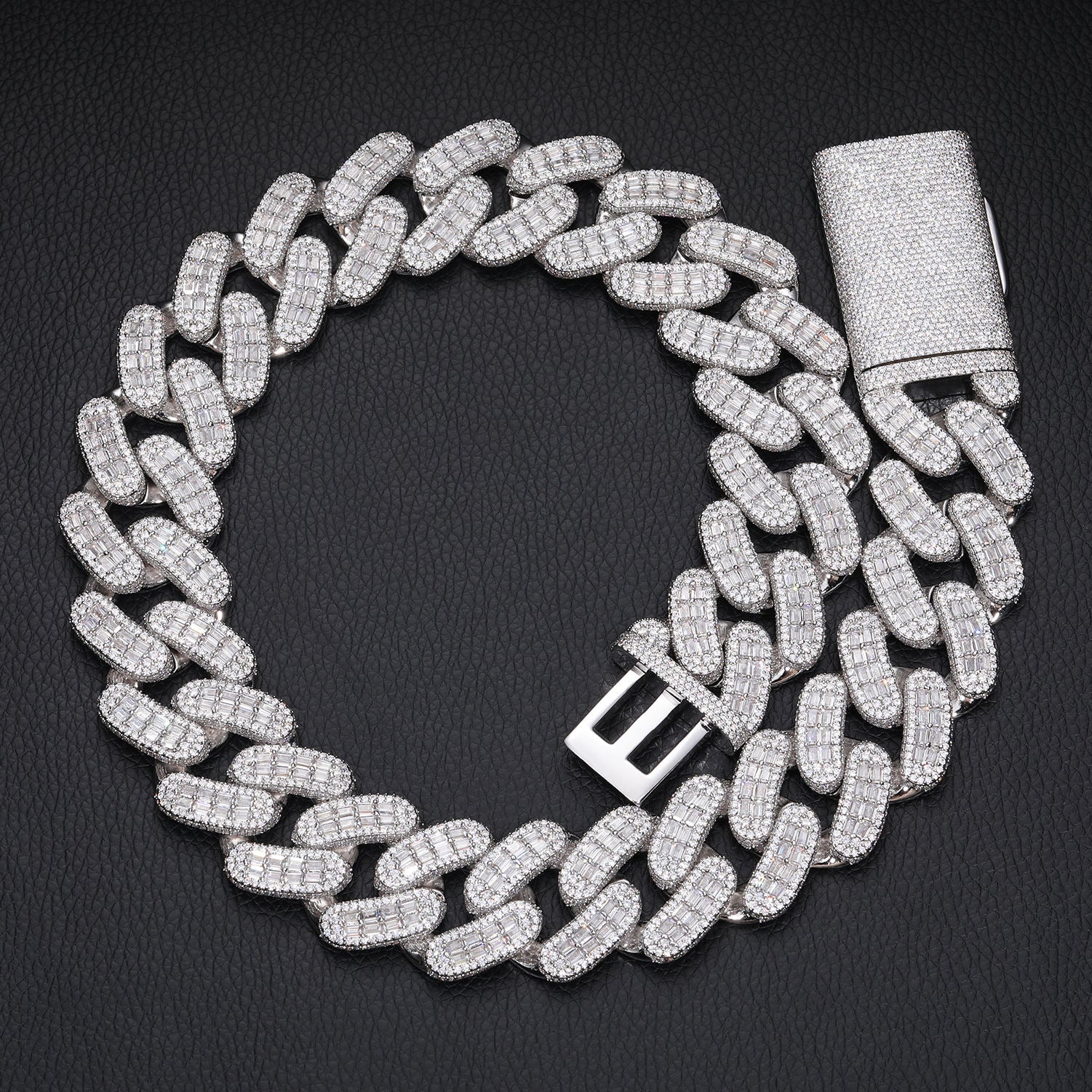 23MM Double Row Baguette Moissanite Cuban Chain – 55.6ct D-Color VVS Brilliance