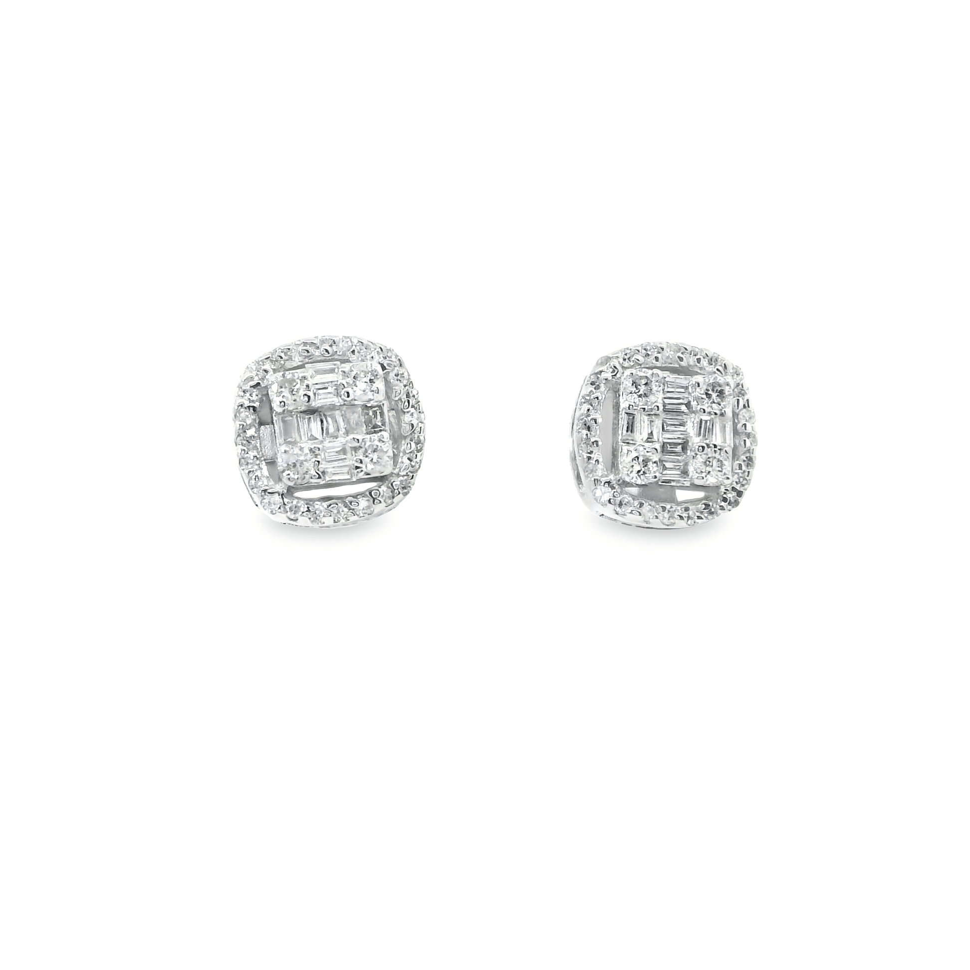 Radiate elegance with these luxurious diamond stud earrings. The intricate design showcases high-quality diamonds encased in sleek white gold settings, ensuring you make a statement wherever you go.