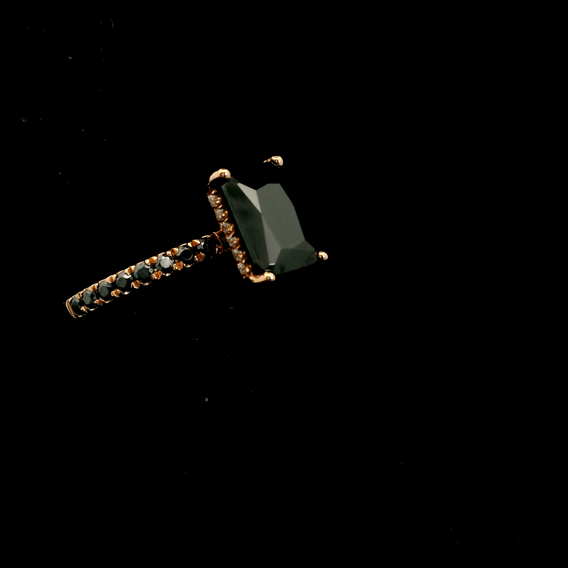 10k Rose Gold and Black Moissanite Emerald Cut Ring