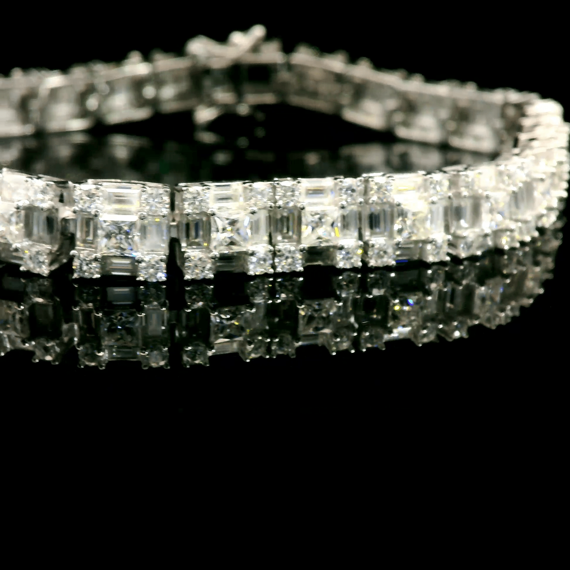 Stop blending in with standard wristwear. The Glacier Link Moissanite Tennis Bracelet isn't just jewelry; it’s a declaration of arrival. We took the classic tennis standard and shattered it, engineering a hypnotic, mesmerizing rhythm of alternating square and round cuts designed for one purpose: maximum visual impact.