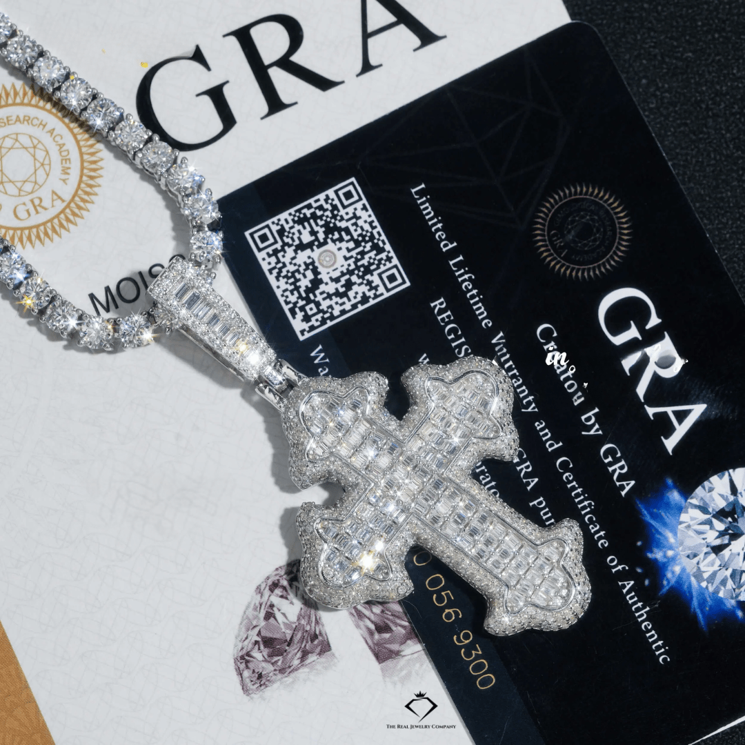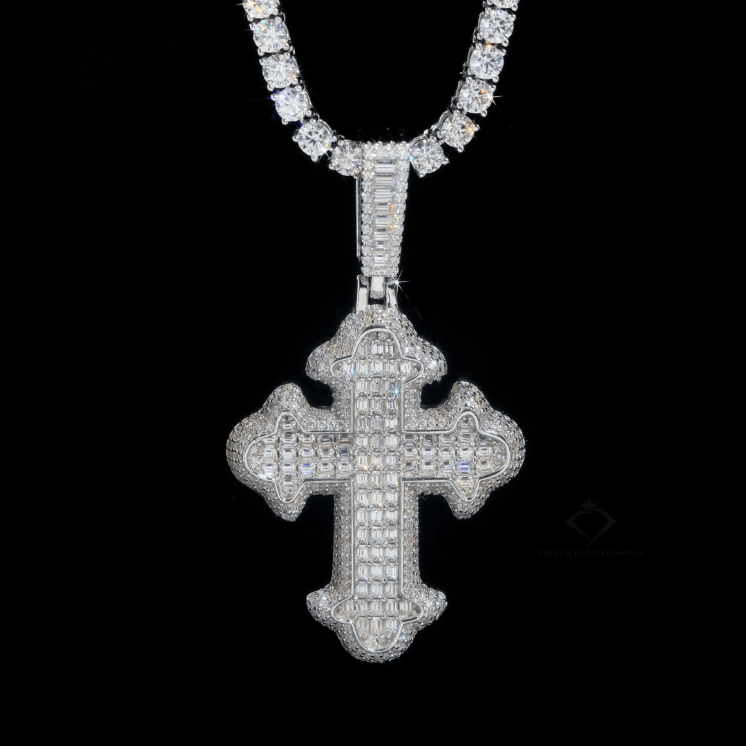 Iced Out Moissanite Cross Pendant – 925 Silver
