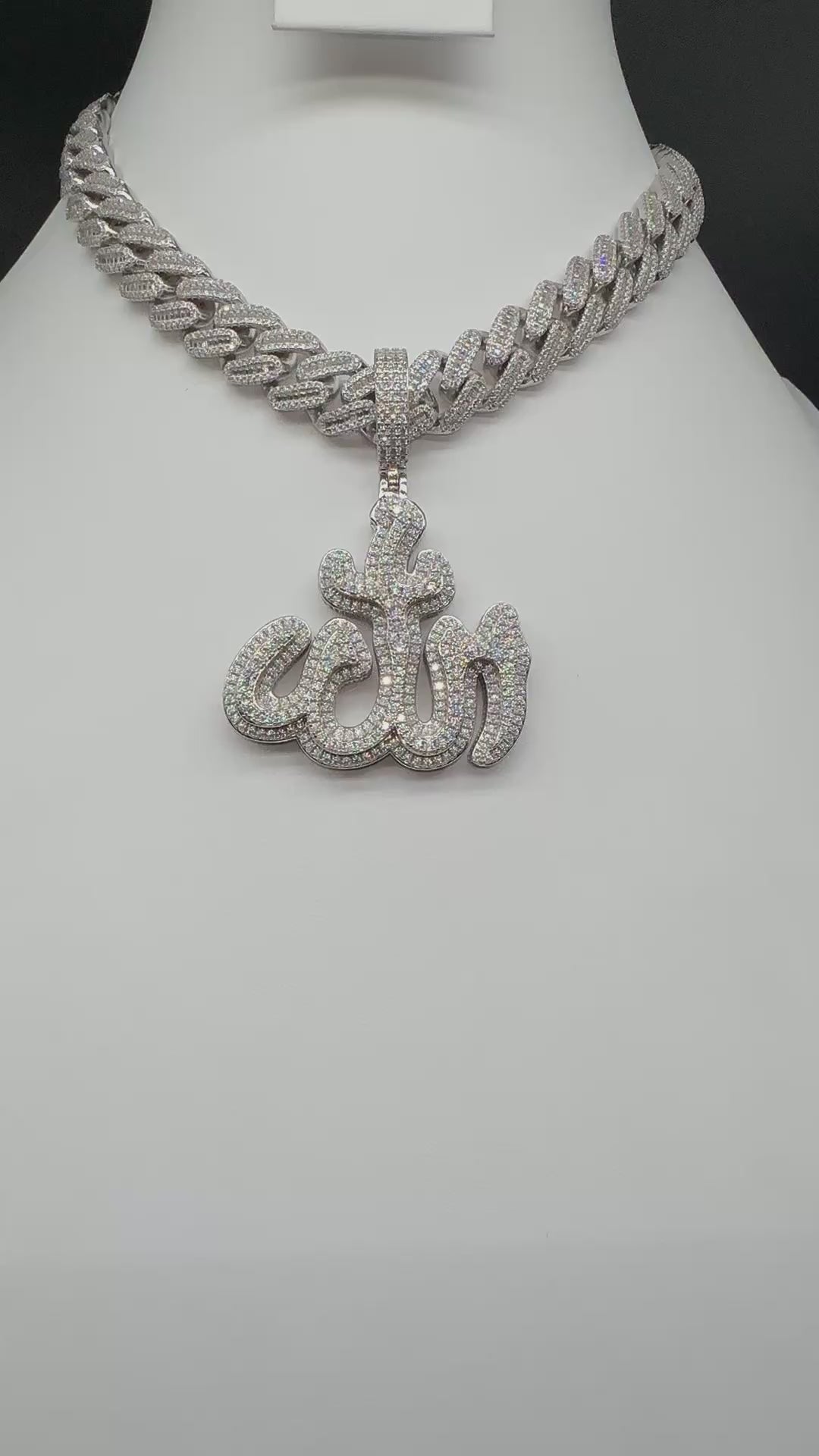 Express your faith and style with our Moissanite Allah Pendant, a stunning piece that radiates elegance and brilliance from every angle. Crafted from premium 925 silver, this pendant is meticulously designed to shine, featuring a fully iced-out look that ensures a dazzling presence.