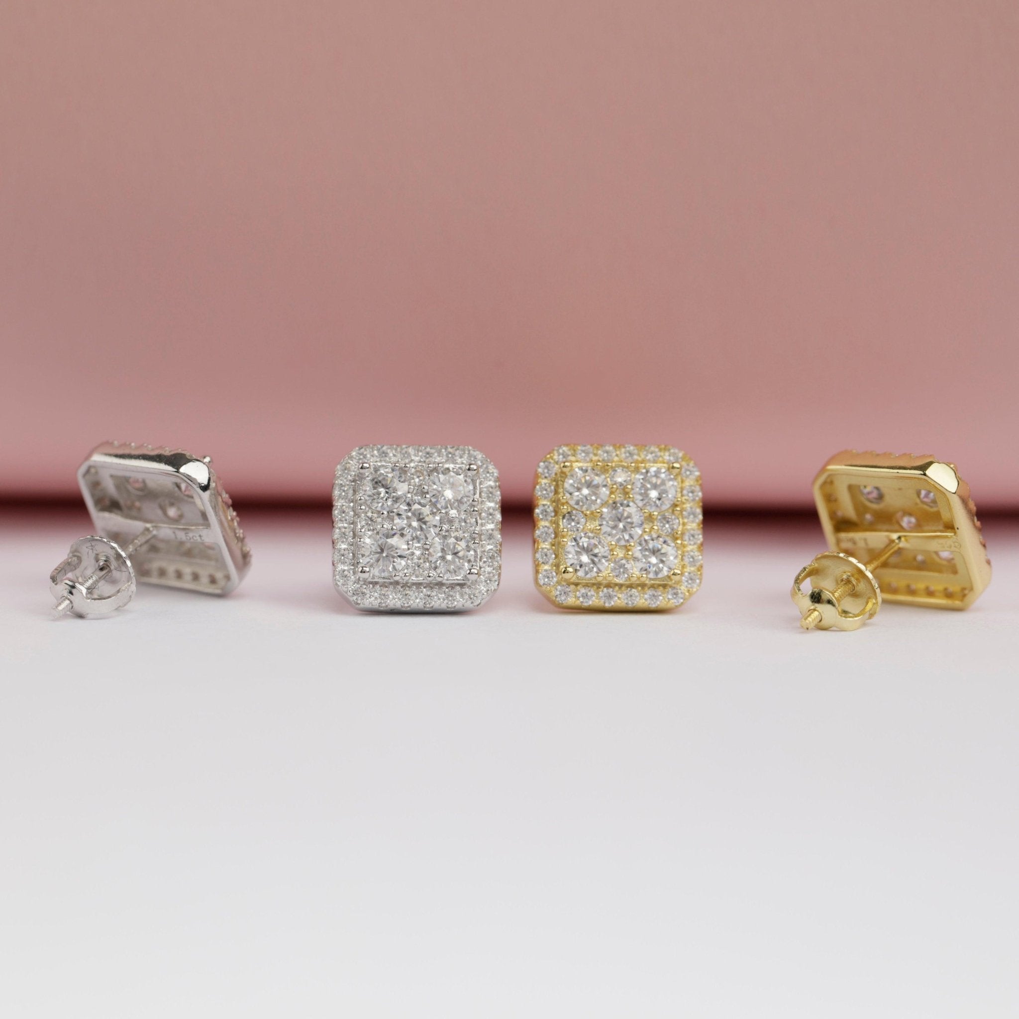 Square Cluster Moissanite Earrings – 8mm, 4.0 CTW, Precious Metal Finishes